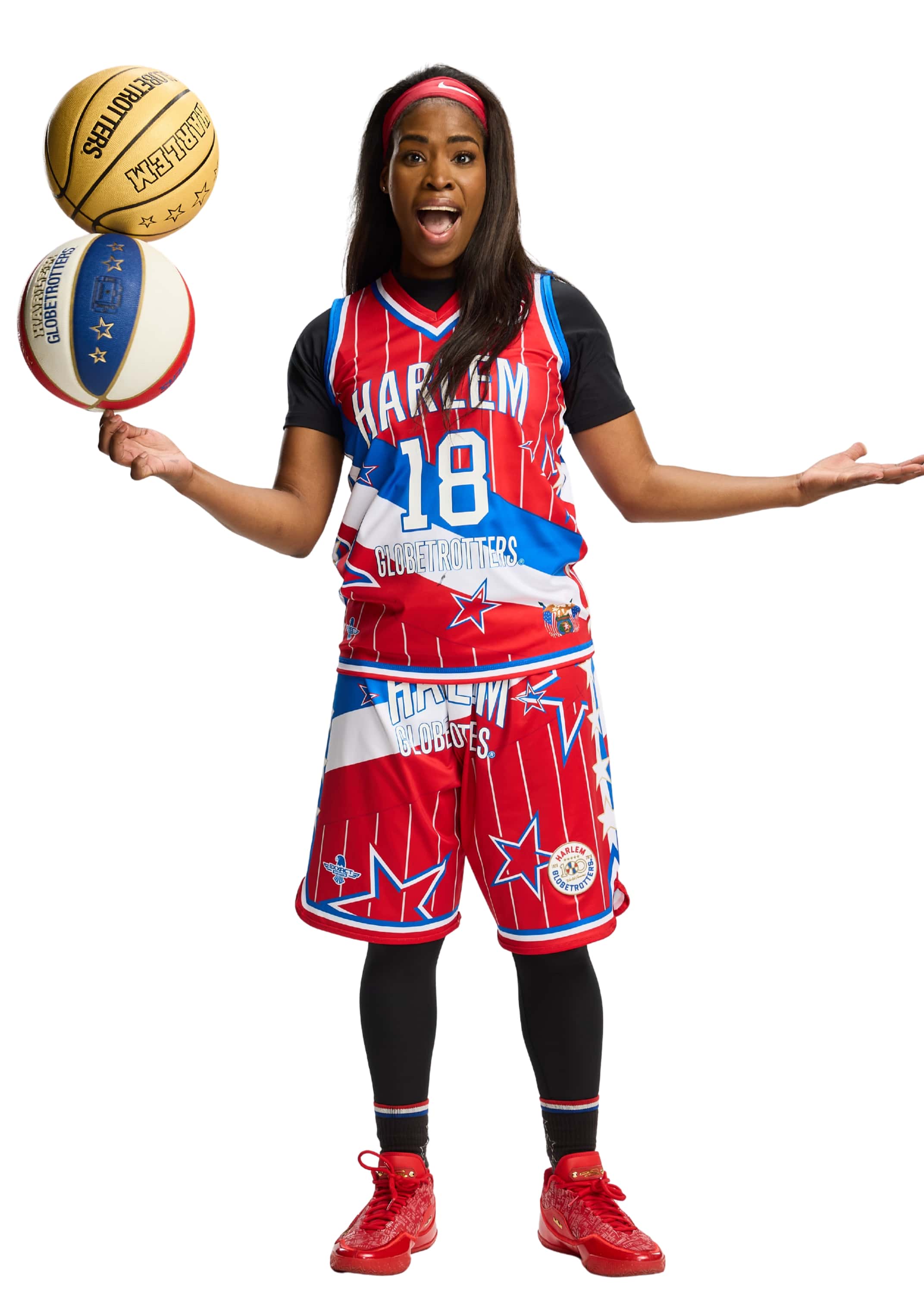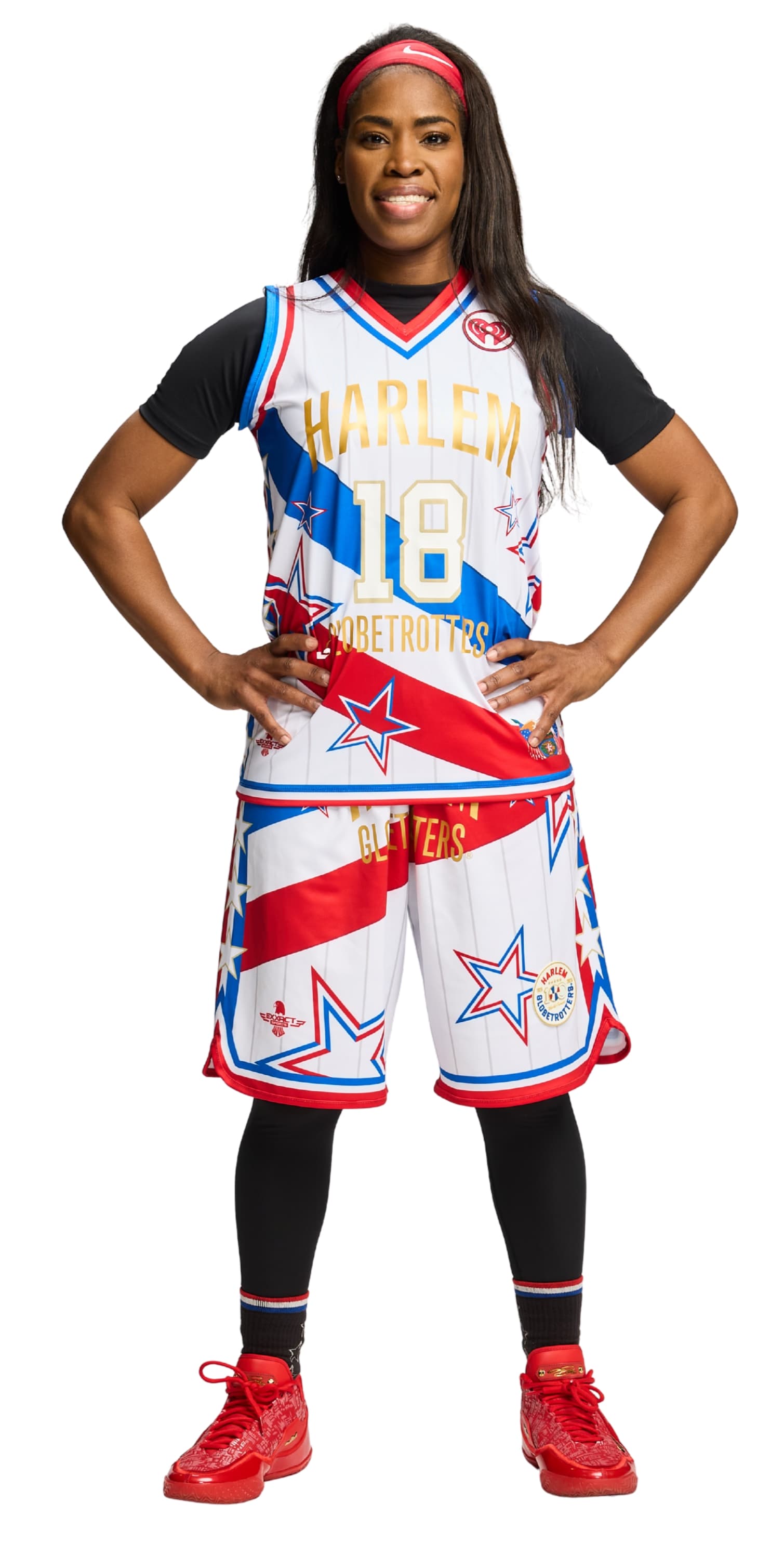 Step into history with the Harlem Globetrotters World-Famous Replica Edition jersey "TNT #18" by Exxact Sports, designed by Jeff Hamilton. An iconic look inspired by 100 years of Globetrotters style and showmanship.